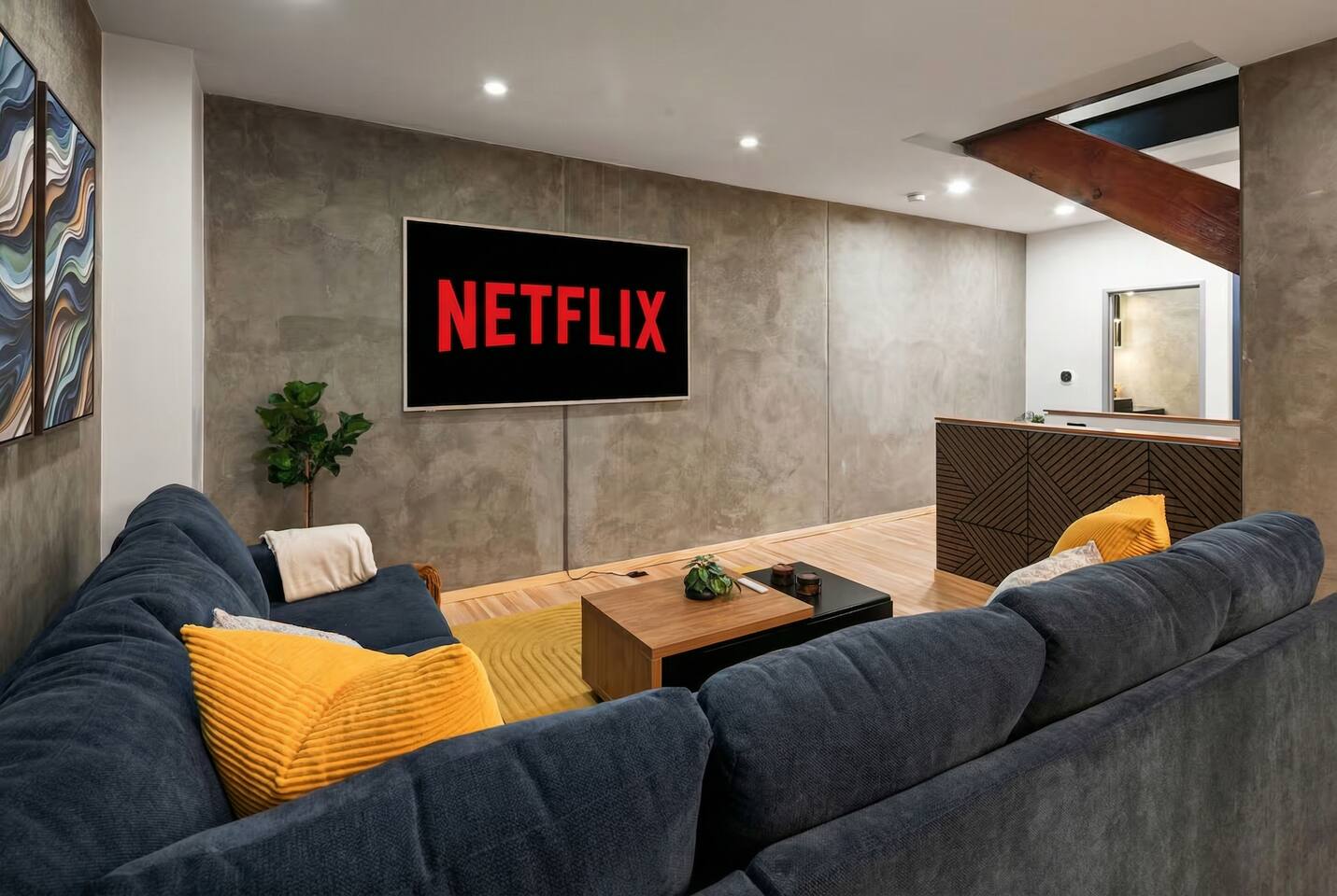 East Village is the part of San Diego that feels like it was made for people who actually want to do things. Restaurants you've bookmarked, bars you've seen on social media, Petco Park is close enough that game day starts the second you step outside. It's downtown without the noise. A real neighborhood with real energy. The Row House sits right in the middle of it. Three stories, three king bedrooms, and the kind of space where six people can spread out without stepping on each other. The second floor is where everything happens — a wide-open kitchen and living area with an 85-inch TV, a pool table that doubles as ping-pong when someone gets competitive, a cocktail bar with a mini-fridge, and a wall-mounted arcade game for the moments between plans. It has the feel of a place designed for hanging out, not just sleeping. The kitchen is the kind you actually want to cook in. Good knives, real cookware, an air fryer, a blender, and a coffee bar with a grinder, a Keurig, a full pot, and enough counter space that breakfast for six doesn't feel like a production. Upstairs is where the trip shifts gears. The primary suite features vaulted ceilings, a live-edge desk with a wall-mounted monitor for checking in on work, and a bathroom with dual vanities. Down the hall: an infrared sauna that makes everything else melt away. A digital gym if you want to keep your routine. And up a pull-down ladder, a private rooftop deck with a two-person hot tub and a skyline that earns its own moment. Mornings hit different when everyone actually slept well. Three king beds across three private rooms means nobody's negotiating for space. A crib and pack-and-play are tucked in the closet for anyone traveling with little ones. The first floor has two bedrooms with LED accents, phone chargers, and their own smart TVs — plus a full bath, a washer and dryer, and direct access to the garage. One parking spot comes with the house, and street parking is available for a second vehicle. Outside, there's an AstroTurf patio with a three-person outdoor sofa — the kind of spot where morning coffee stretches longer than it should. WiFi runs at 400 Mbps, and every room has a smart TV. Self-check-in with a smart lock means you arrive on your own time. Petco Park is a ten-minute walk. The Gaslamp Quarter is ten minutes the other direction. Seaport Village, the Convention Center, craft breweries, late-night tacos, coffee shops that know what they're doing — all of it is close enough that the car stays parked the entire trip. This is the trip where you don't need a plan. You just need to show up.