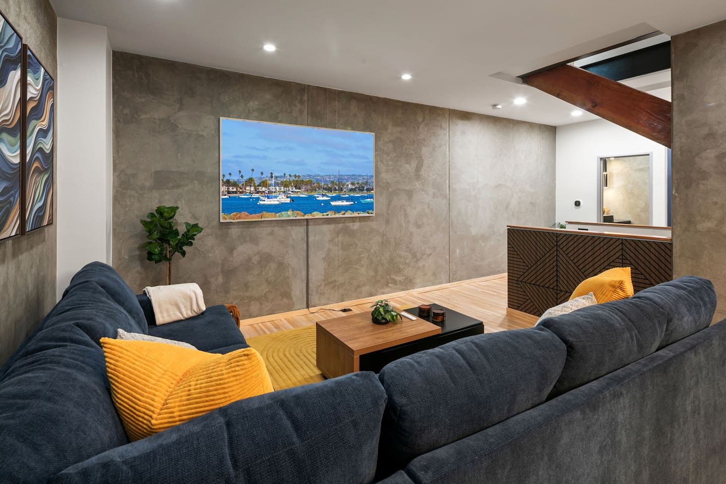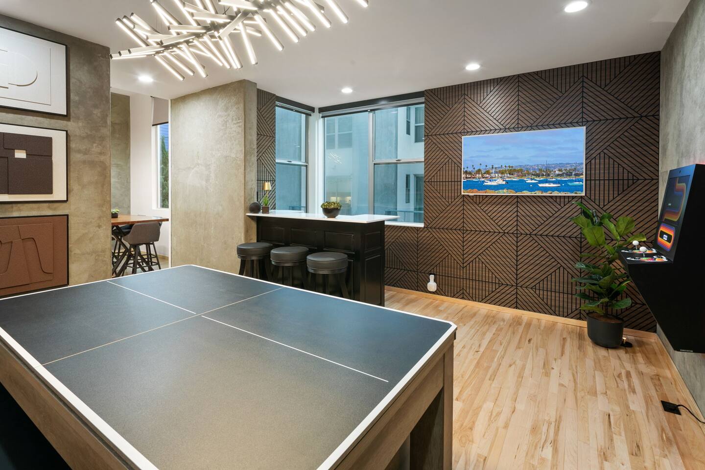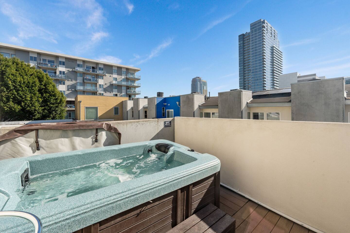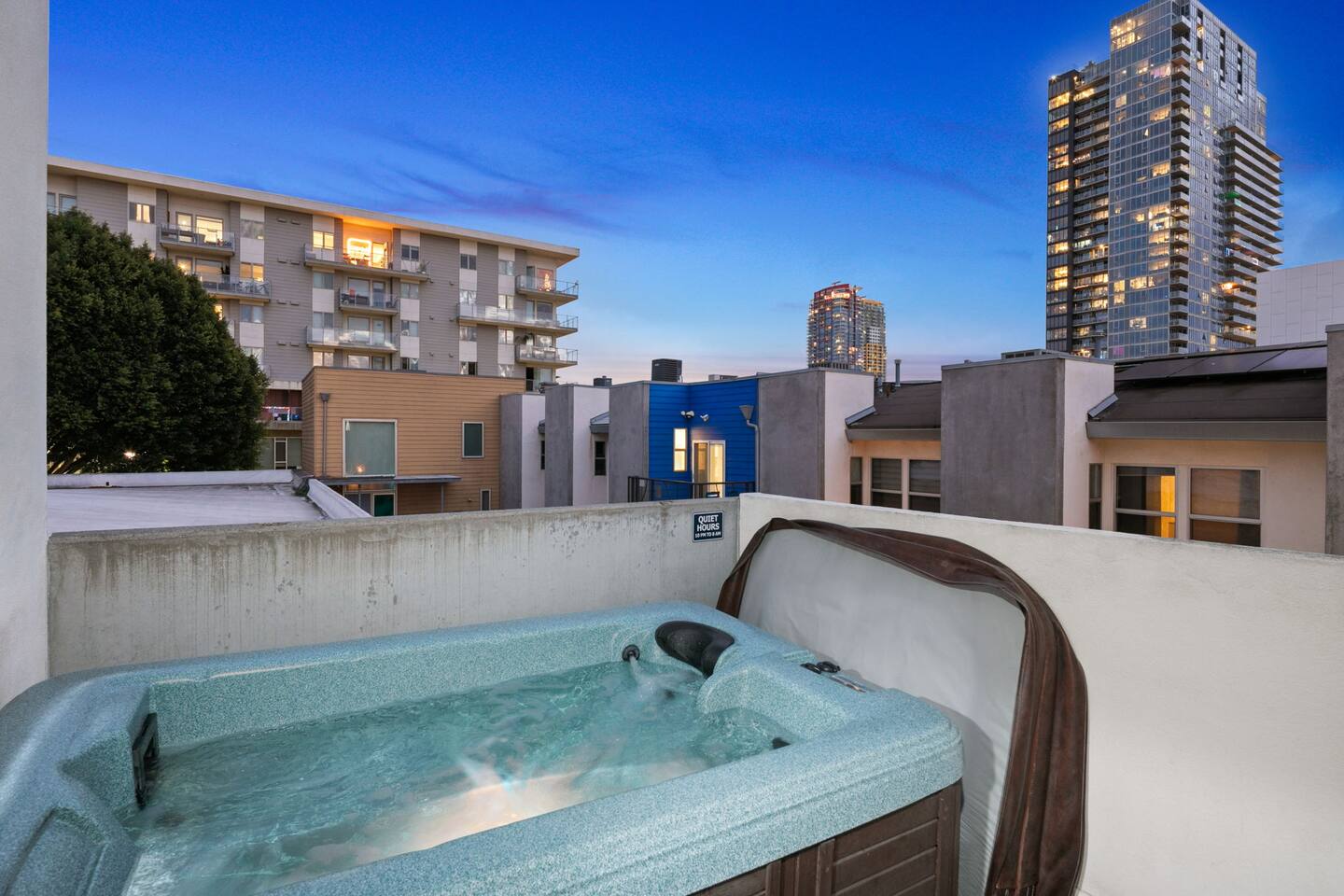 Welcome to The Row House — Your Premium Downtown Escape Step into a beautifully remodeled three-story row house in San Diego’s vibrant East Village. Designed for families, business travelers, conference attendees, Padres fans, and friend groups, this high-end townhouse blends comfort, style, wellness, and entertainment — all in an unbeatable walkable location. ✨ Main Highlights • Private 2-person hot tub deck • Infrared sauna + digital workout gym • Three king bedrooms + queen pullout • Garage parking included • 400 Mbps high-speed internet • 85" 4K living room TV + multiple 43" TVs in bedrooms • Pool table / ping-pong combo • Wall-mounted arcade game + bar & mini-fridge • Dedicated workspace with monitor • Coffee bar with K-cups, full pot, grinder & snacks • Walkable to Petco Park, Gaslamp, Seaport Village, Convention Center • Licensed STR — City of San Diego STR-12077L 🏠 Layout Overview FIRST FLOOR – Bedrooms & Garage Access • Two bedrooms, each with king beds, LED accents, phone chargers & 43" TVs • Fully stocked full bath • Stackable washer/dryer with supplies • Access to private garage with 1 parking spot • Extra street parking available SECOND FLOOR – Kitchen, Bar, Games & Living Room • Fully stocked kitchen with every cooking essential • Coffee bar with Keurig + full pot, grinder, creamer, sweeteners & snacks • Dining table for six • Pool table that converts to ping-pong or extra dining space • Bar with 3 stools, cocktail tools & mini fridge • Wall-mounted arcade game • Large living room with 85" TV, queen sleeper sofa & half bath THIRD FLOOR – Primary Suite + Wellness Amenities • King bedroom with vaulted ceilings • Live-edge desk + wall-mounted monitor (dedicated workstation) • Infrared sauna • Digital home gym (with QR instruction video) • Large walk-in closet with crib, pack-and-play, high chair, extra linens & beach towels • Beautiful remodeled bathroom with dual vanities • Pull-down ladder to private 2-person hot tub deck 🌤 Additional Outdoor Space • AstroTurf patio with 3-person outdoor sofa & coffee table — perfect for morning coffee or sunset hangs. 🛌 Sleeping Arrangements • Primary Bedroom: 1 King • Bedroom 2: King • Bedroom 3: King • Living Room: Queen pullout (sleeps 2) • Crib + pack-and-play included Max Guests: 6 📡 WiFi & Work From Home • 400 Mbps fast internet • Dedicated workstation on 3rd floor • Wall-mounted monitor for laptops • Wireless printer available Perfect for remote work, long stays, or conference trips. 🎮 Entertainment • 85" 4K smart TV • 43" smart TVs in every bedroom • Signed-in Netflix account (backup login provided) • Pool table / ping-pong table • Wall-mounted arcade game • Bar with mini fridge • Board games (optional if you want to add them) 🍳 Kitchen Amenities Everything you listed has been incorporated as checkable amenities, including: Air fryer, blender, toaster, coffee maker(s), pots, pans, knives, spices, oil, dishwasher, microwave, etc. 🚗 Parking • 1-car garage included • Additional street parking available • No parking restrictions except standard street signage 🛑 House Rules (Airbnb Format) • No parties or events • Quiet hours after 10:00 PM (city enforced) • No smoking or vaping anywhere (including patios) • No pets • Check-in: 3:00 PM • Check-out: 10:00 AM • Only registered guests allowed on the property • Devices monitor noise, smoking, and occupancy (no cameras inside) 🧖 Hot Tub, Gym & Sauna Rules Hot Tub • Open until 10:00 PM only • Maximum 2 people (overflow risk) • No one under 18 allowed • No glass containers • Please rinse before use • No loud noise outside after 10 PM Sauna • No one under 18 • Follow posted on-unit instructions • Use at your own risk Digital Gym • Must scan QR code and watch the instructional safety video • No one under 18 📍 Location & Walkability The Row House sits in East Village, one of San Diego’s most walkable and energetic neighborhoods. Walking Distance: • Petco Park — 10–12 mins • Gaslamp Quarter — 10 mins • Seaport Village — 15–18 mins • Convention Center — 12 mins • San Diego Bayfront — 15 mins • East Village Tavern + Bowl — 3 mins • Cowboy Star Steakhouse — 2 mins Surrounded by coffee, bars, brunch spots, ramen, Thai, Indian, tacos & nightlife.