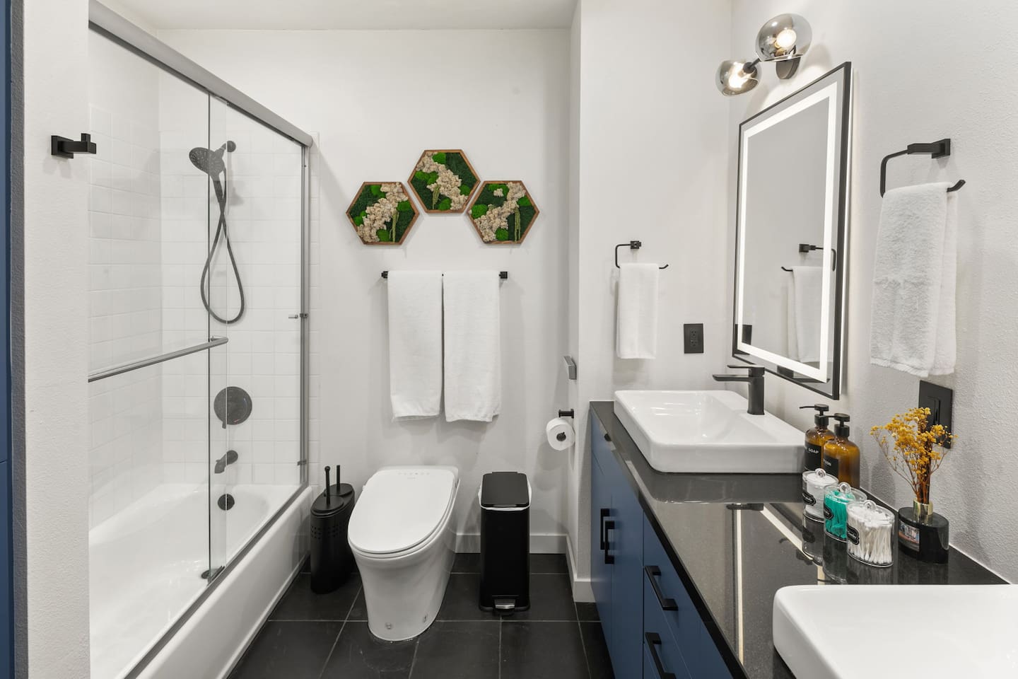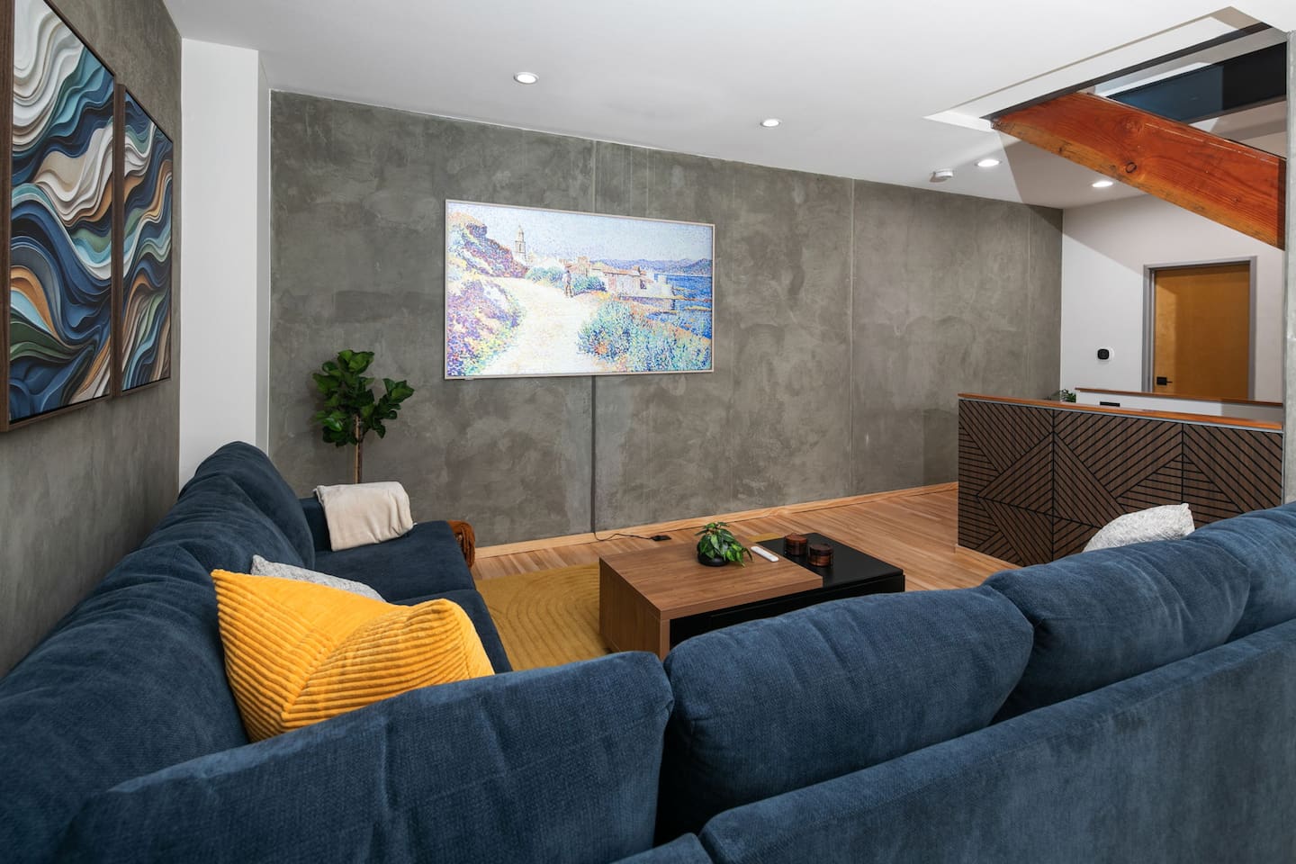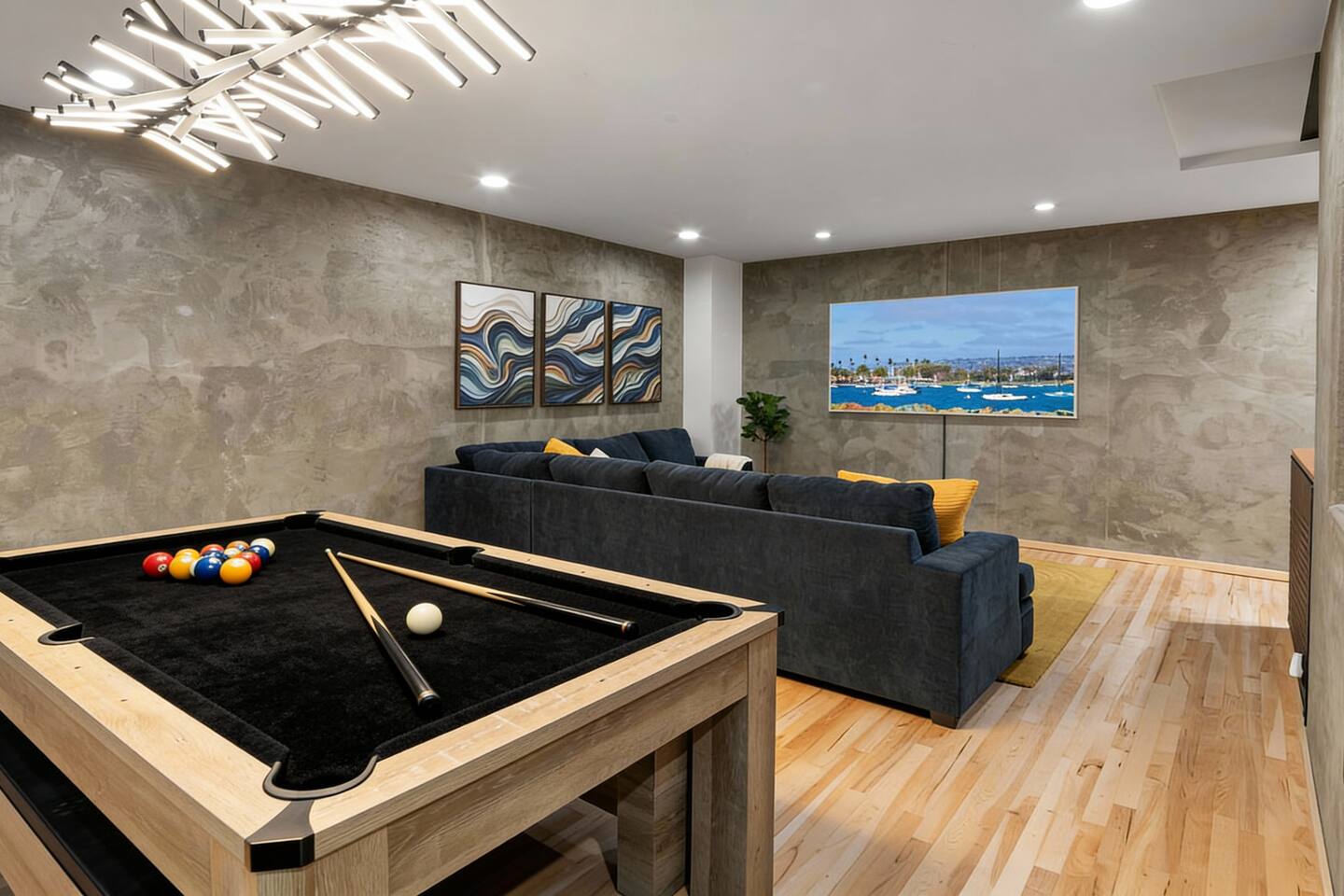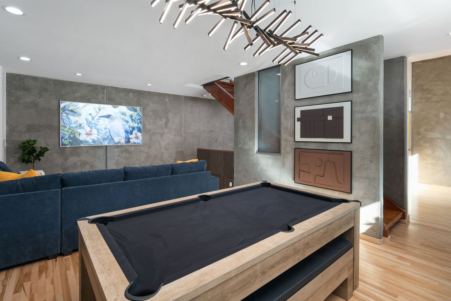 Welcome to The Row House — Your Premium Downtown Escape Step into a beautifully remodeled three-story row house in San Diego’s vibrant East Village. Designed for families, business travelers, conference attendees, Padres fans, and friend groups, this high-end townhouse blends comfort, style, wellness, and entertainment — all in an unbeatable walkable location. ✨ Main Highlights • Private 2-person hot tub deck • Infrared sauna + digital workout gym • Three king bedrooms + queen pullout • Garage parking included • 400 Mbps high-speed internet • 85" 4K living room TV + multiple 43" TVs in bedrooms • Pool table / ping-pong combo • Wall-mounted arcade game + bar & mini-fridge • Dedicated workspace with monitor • Coffee bar with K-cups, full pot, grinder & snacks • Walkable to Petco Park, Gaslamp, Seaport Village, Convention Center • Licensed STR — City of San Diego STR-12077L 🏠 Layout Overview FIRST FLOOR – Bedrooms & Garage Access • Two bedrooms, each with king beds, LED accents, phone chargers & 43" TVs • Fully stocked full bath • Stackable washer/dryer with supplies • Access to private garage with 1 parking spot • Extra street parking available SECOND FLOOR – Kitchen, Bar, Games & Living Room • Fully stocked kitchen with every cooking essential • Coffee bar with Keurig + full pot, grinder, creamer, sweeteners & snacks • Dining table for six • Pool table that converts to ping-pong or extra dining space • Bar with 3 stools, cocktail tools & mini fridge • Wall-mounted arcade game • Large living room with 85" TV, queen sleeper sofa & half bath THIRD FLOOR – Primary Suite + Wellness Amenities • King bedroom with vaulted ceilings • Live-edge desk + wall-mounted monitor (dedicated workstation) • Infrared sauna • Digital home gym (with QR instruction video) • Large walk-in closet with crib, pack-and-play, high chair, extra linens & beach towels • Beautiful remodeled bathroom with dual vanities • Pull-down ladder to private 2-person hot tub deck 🌤 Additional Outdoor Space • AstroTurf patio with 3-person outdoor sofa & coffee table — perfect for morning coffee or sunset hangs. 🛌 Sleeping Arrangements • Primary Bedroom: 1 King • Bedroom 2: King • Bedroom 3: King • Living Room: Queen pullout (sleeps 2) • Crib + pack-and-play included Max Guests: 6 📡 WiFi & Work From Home • 400 Mbps fast internet • Dedicated workstation on 3rd floor • Wall-mounted monitor for laptops • Wireless printer available Perfect for remote work, long stays, or conference trips. 🎮 Entertainment • 85" 4K smart TV • 43" smart TVs in every bedroom • Signed-in Netflix account (backup login provided) • Pool table / ping-pong table • Wall-mounted arcade game • Bar with mini fridge • Board games (optional if you want to add them) 🍳 Kitchen Amenities Everything you listed has been incorporated as checkable amenities, including: Air fryer, blender, toaster, coffee maker(s), pots, pans, knives, spices, oil, dishwasher, microwave, etc. 🚗 Parking • 1-car garage included • Additional street parking available • No parking restrictions except standard street signage 🛑 House Rules (Airbnb Format) • No parties or events • Quiet hours after 10:00 PM (city enforced) • No smoking or vaping anywhere (including patios) • No pets • Check-in: 3:00 PM • Check-out: 10:00 AM • Only registered guests allowed on the property • Devices monitor noise, smoking, and occupancy (no cameras inside) 🧖 Hot Tub, Gym & Sauna Rules Hot Tub • Open until 10:00 PM only • Maximum 2 people (overflow risk) • No one under 18 allowed • No glass containers • Please rinse before use • No loud noise outside after 10 PM Sauna • No one under 18 • Follow posted on-unit instructions • Use at your own risk Digital Gym • Must scan QR code and watch the instructional safety video • No one under 18 📍 Location & Walkability The Row House sits in East Village, one of San Diego’s most walkable and energetic neighborhoods. Walking Distance: • Petco Park — 10–12 mins • Gaslamp Quarter — 10 mins • Seaport Village — 15–18 mins • Convention Center — 12 mins • San Diego Bayfront — 15 mins • East Village Tavern + Bowl — 3 mins • Cowboy Star Steakhouse — 2 mins Surrounded by coffee, bars, brunch spots, ramen, Thai, Indian, tacos & nightlife.