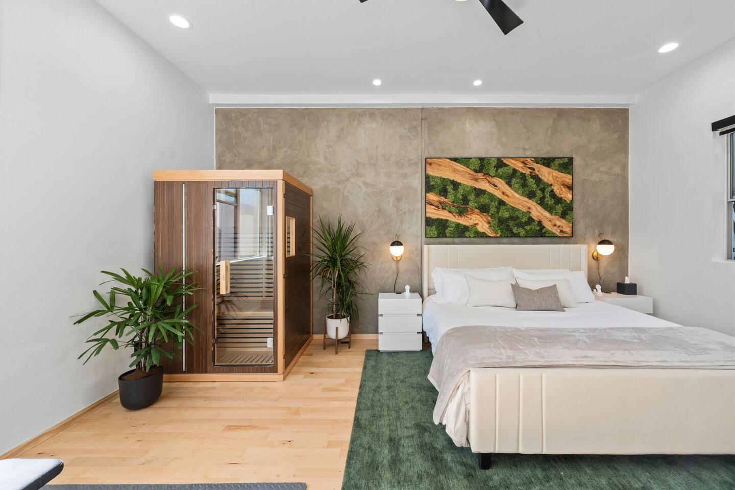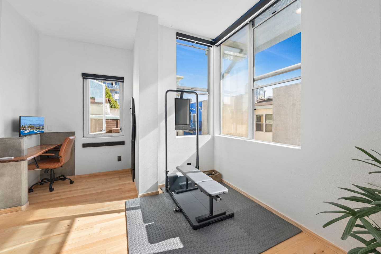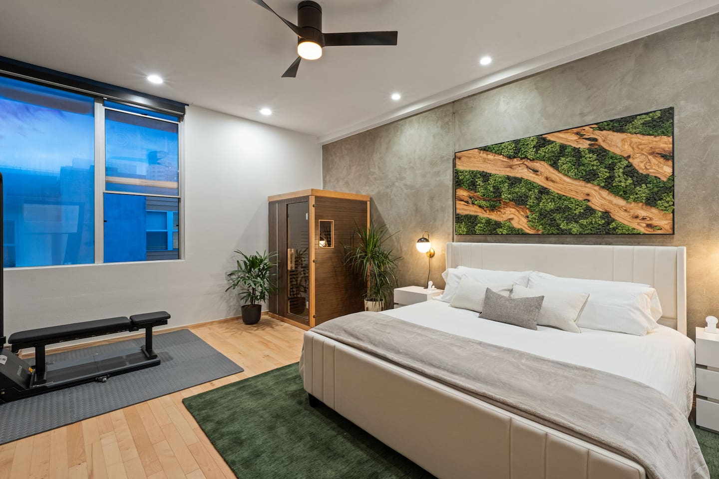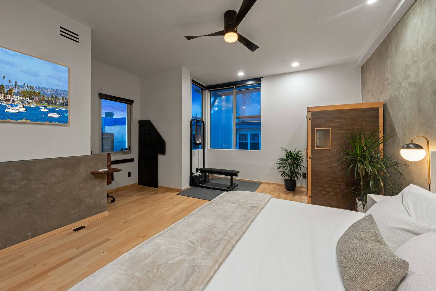 Welcome to The Row House, your luxury three-story urban retreat in the heart of East Village. Enjoy a private hot tub deck, infrared sauna, in-home gym, three king bedrooms, 400 Mbps WiFi, a full kitchen, garage parking, and multiple entertainment spaces — all within walking distance to Petco Park, Gaslamp, Seaport Village, and San Diego’s best dining.