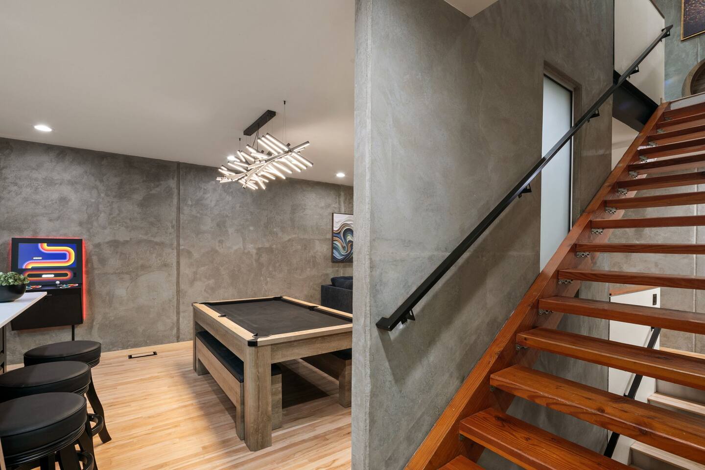 Guests have full access to the entire three-story townhouse, including all indoor and outdoor areas: • All three levels of the home • Private garage parking for one vehicle • Kitchen, dining, and living areas • Pool table / ping-pong table • Bar area with mini fridge and arcade game • All bedrooms and bathrooms • Third-floor wellness area with the infrared sauna, digital gym machine, and dedicated workspace • Private hot tub deck (open until 10pm) • Outdoor patio with seating Guests will receive gate codes, the front-door code, and access instructions before arrival. Two garage remotes are located inside the home for opening the 10th Ave and 11th Ave vehicle gates.