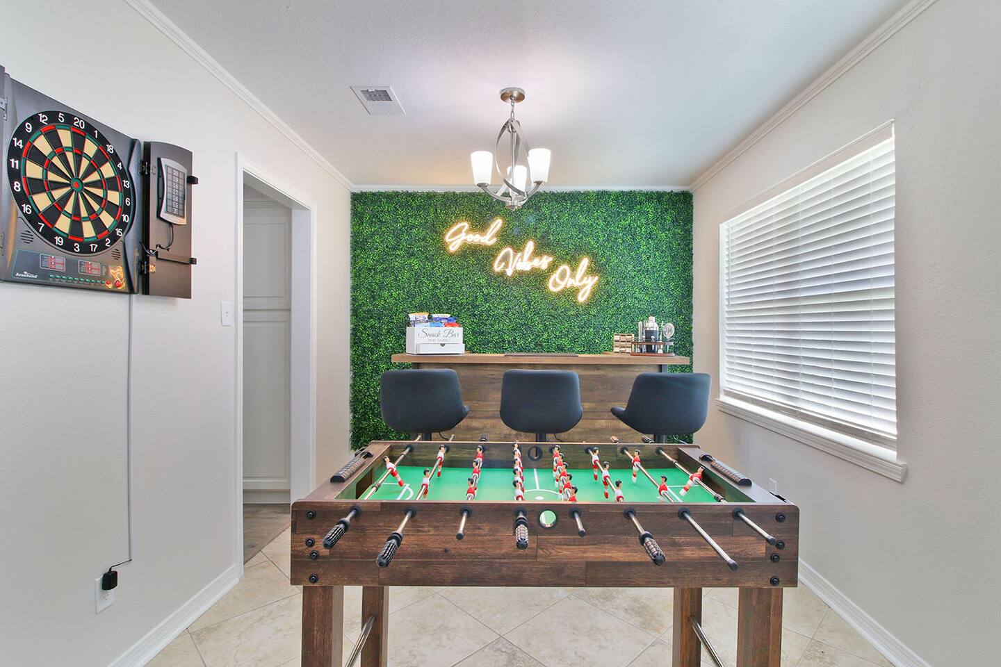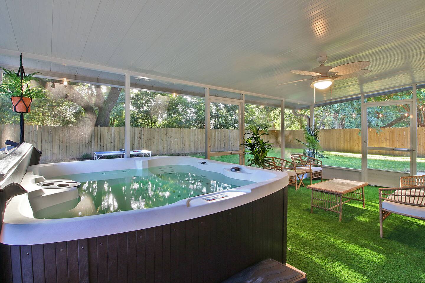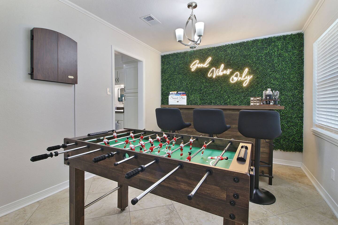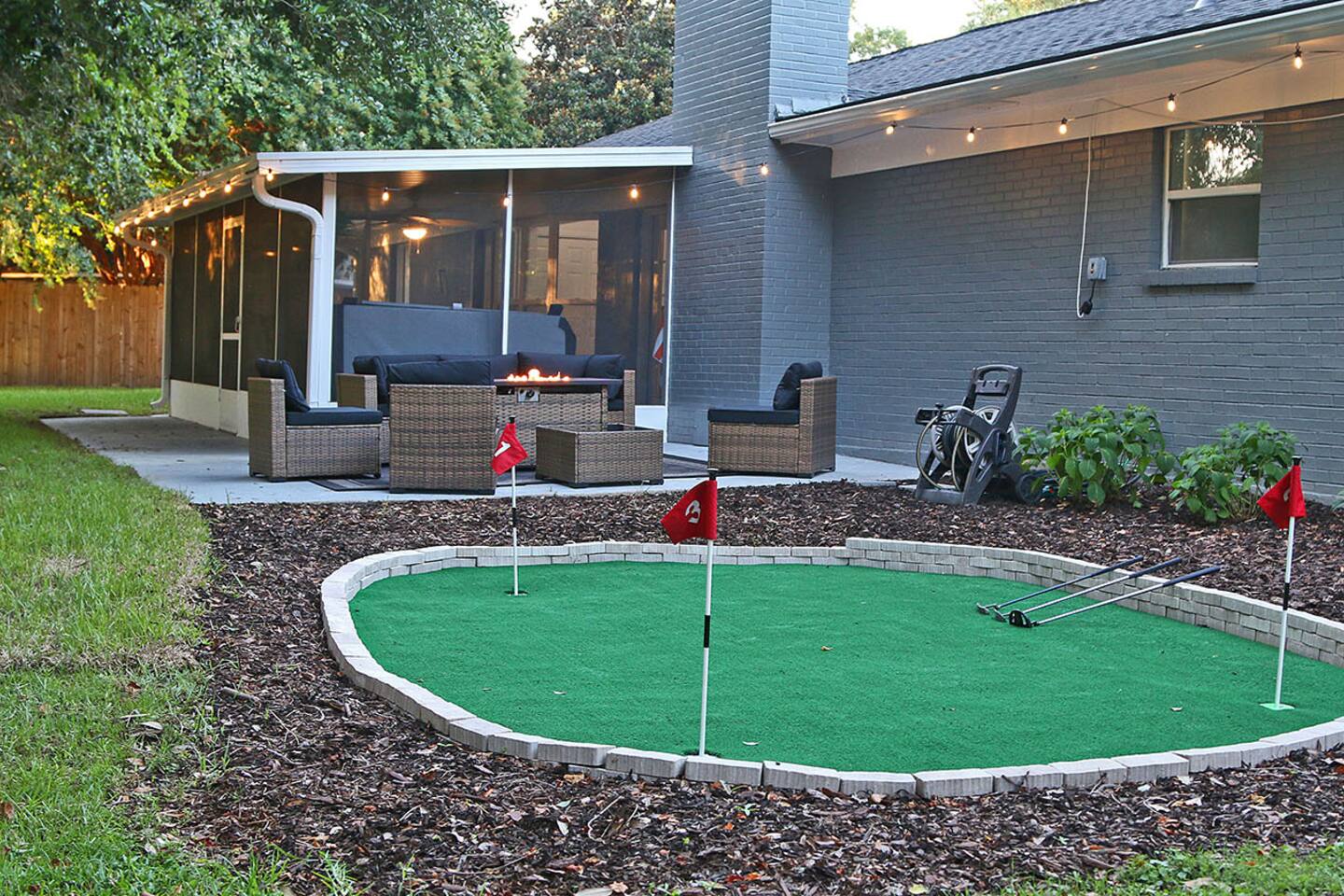 Relax and play just minutes from the beach at this fun-filled Gulfport getaway! Enjoy the private hot tub, putting green, outdoor fire pit, cornhole, ping pong, and a covered lounge area. Inside, kick back with foosball, darts, an indoor bar, and 4 large smart TVs. With 3 bedrooms and 2 baths, there’s room for family or friends to unwind in comfort. Whether you're here to chill or compete, this beach retreat has it all!