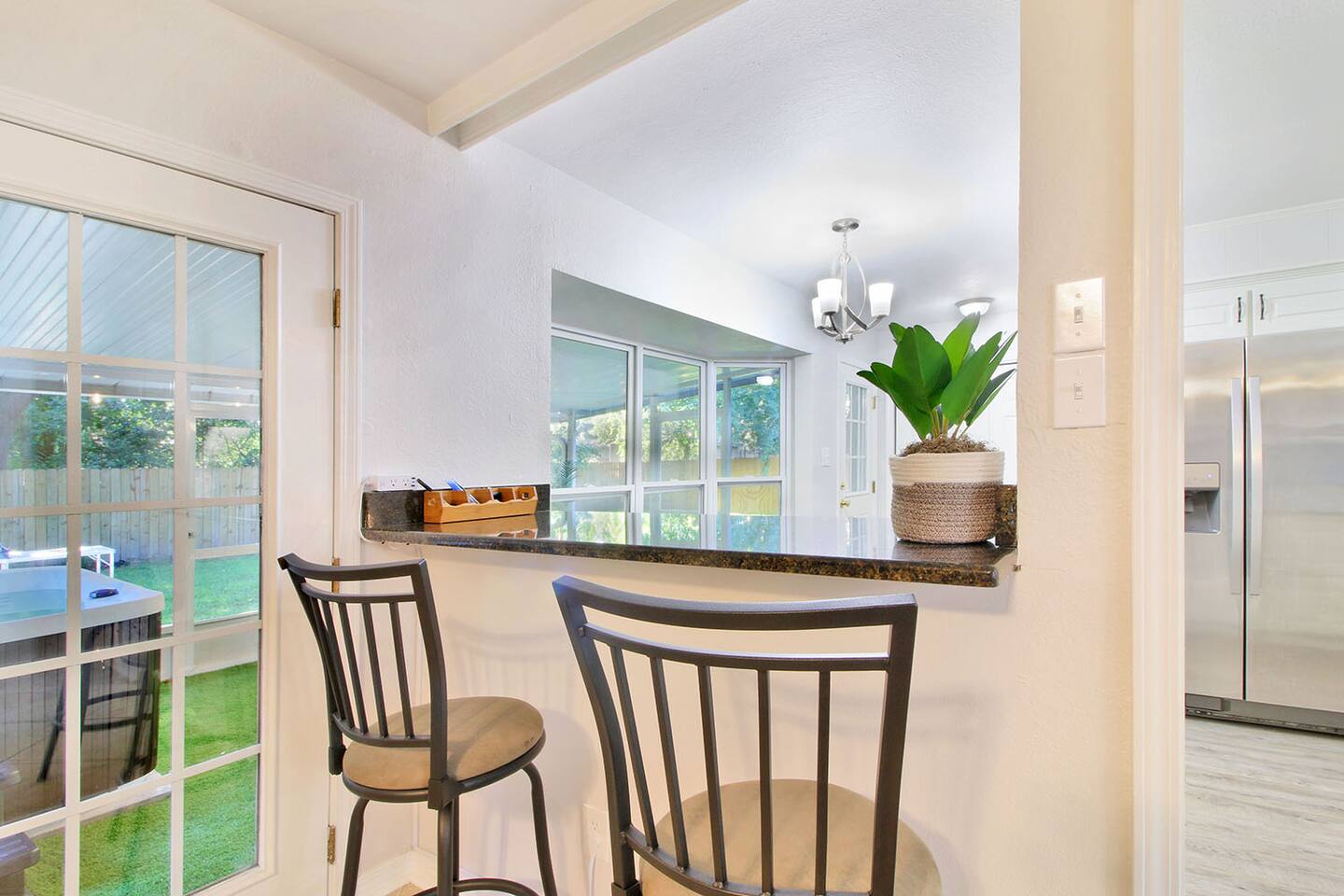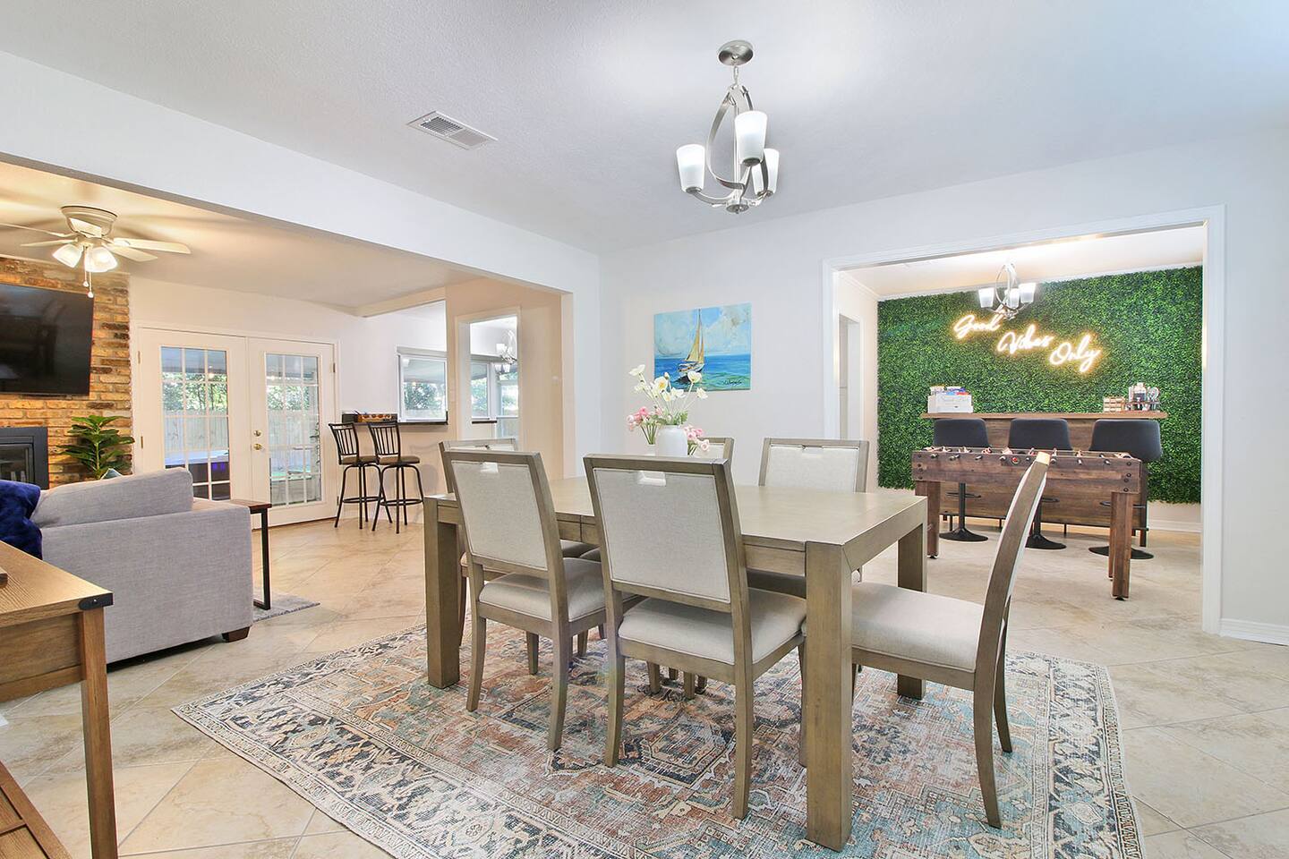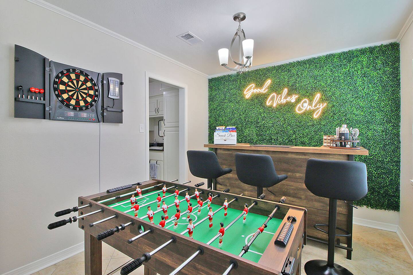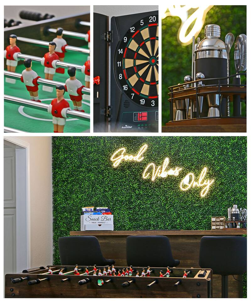 Relax and play just minutes from the beach at this fun-filled Gulfport getaway! Enjoy the private hot tub, putting green, outdoor fire pit, cornhole, ping pong, and a covered lounge area. Inside, kick back with foosball, darts, an indoor bar, and 4 large smart TVs. With 3 bedrooms and 2 baths, there’s room for family or friends to unwind in comfort. Whether you're here to chill or compete, this beach retreat has it all!