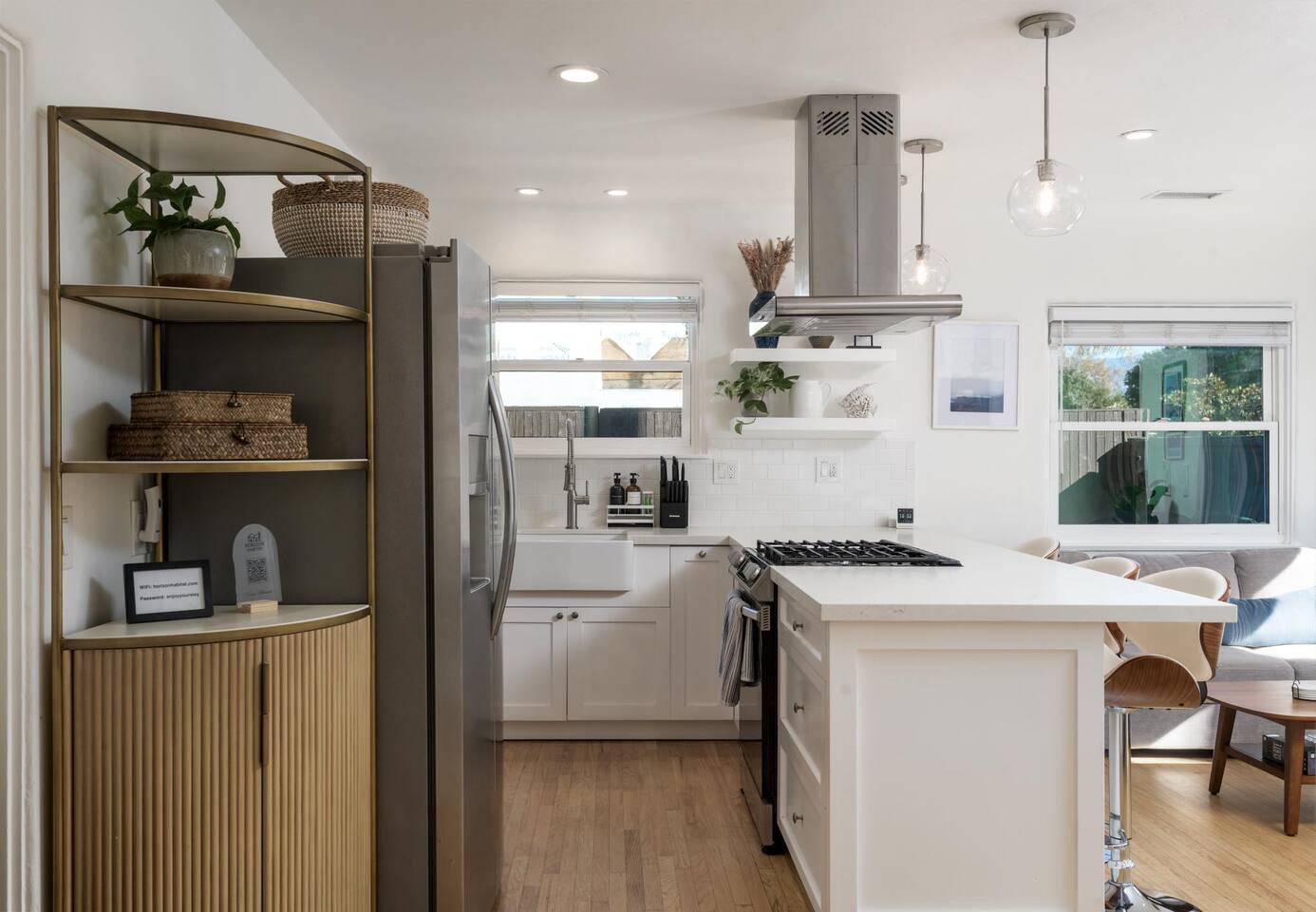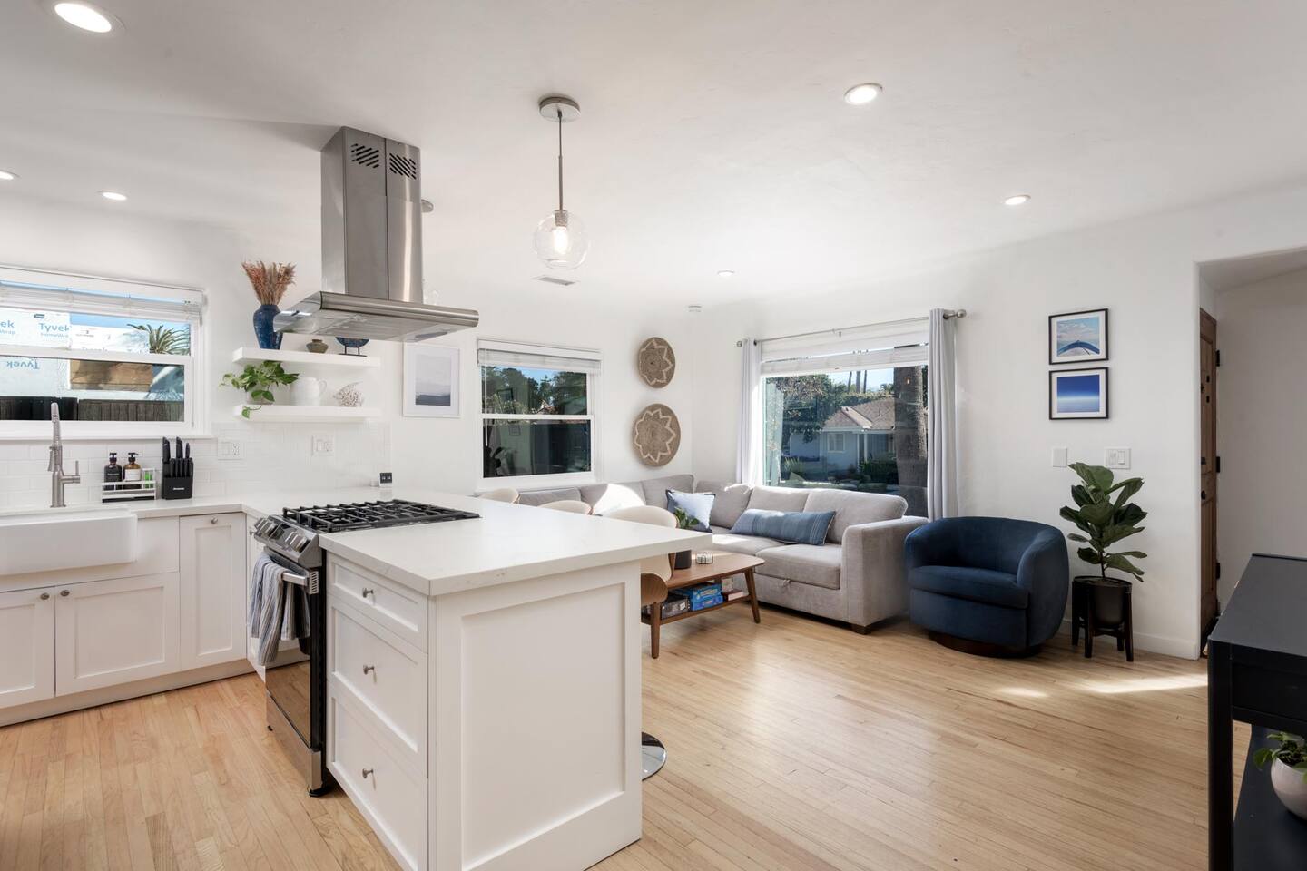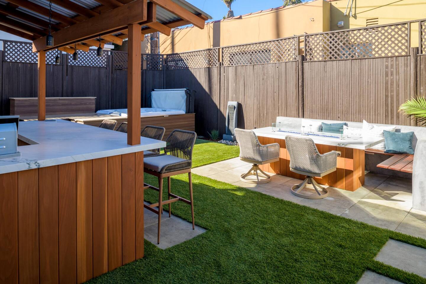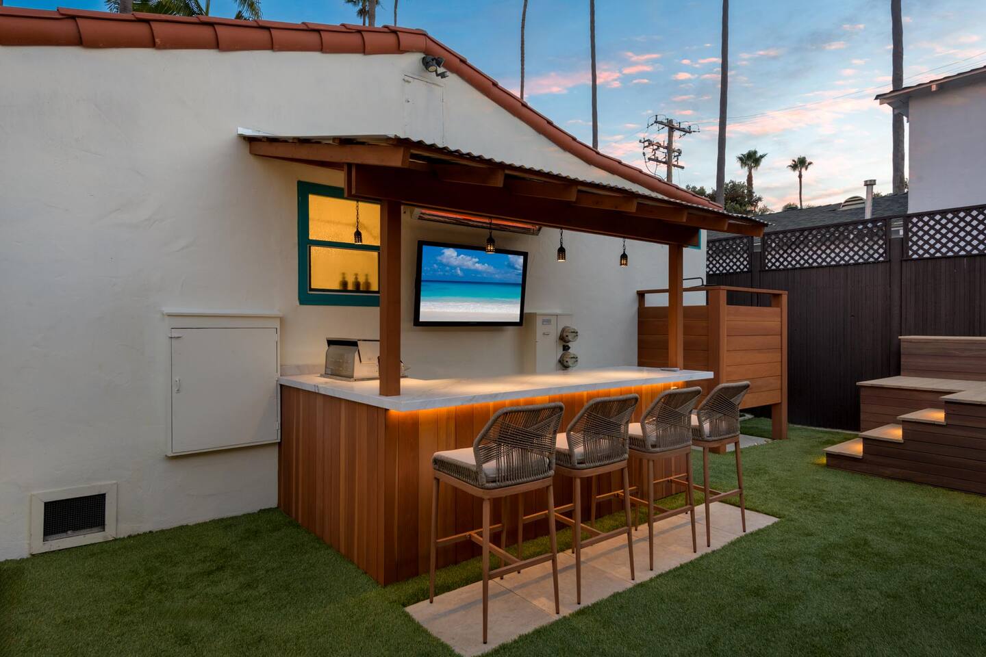 Enjoy a stylish home with open living, a detached game room, and a backyard retreat featuring a hot tub, BBQ bar, and fire pit. Located steps from Santa Barbara’s nightlife, you’ll be close to the action—which can mean live music and weekend energy from nearby bars.