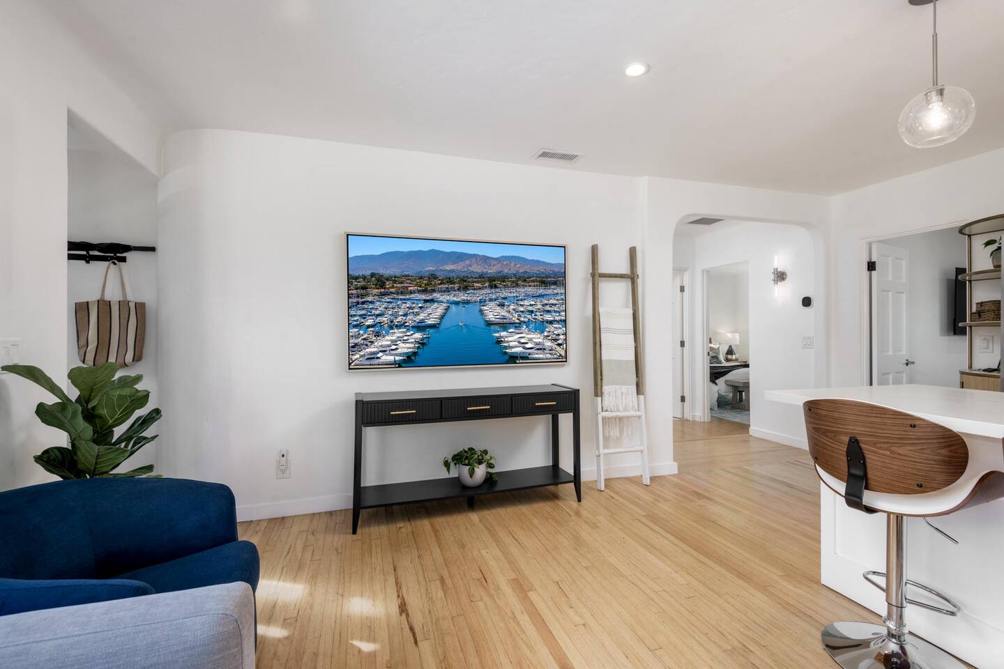 This stylish 3-Bedroom home with detached Game Room + Murphy Bed Bonus Bedroom is just three blocks from the beach and steps from the vibrant Funk Zone, Downtown, a trendy bar, and a local brewery. Inside, enjoy a fully upgraded kitchen, hardwood floors, and open-concept living. In the backyard, unwind in the private hot tub, grill out at the outdoor bar and BBQ, or relax by the fire pit under the stars. Walk or bike everywhere—beach, wine tasting, dining, and nightlife all at your doorstep.